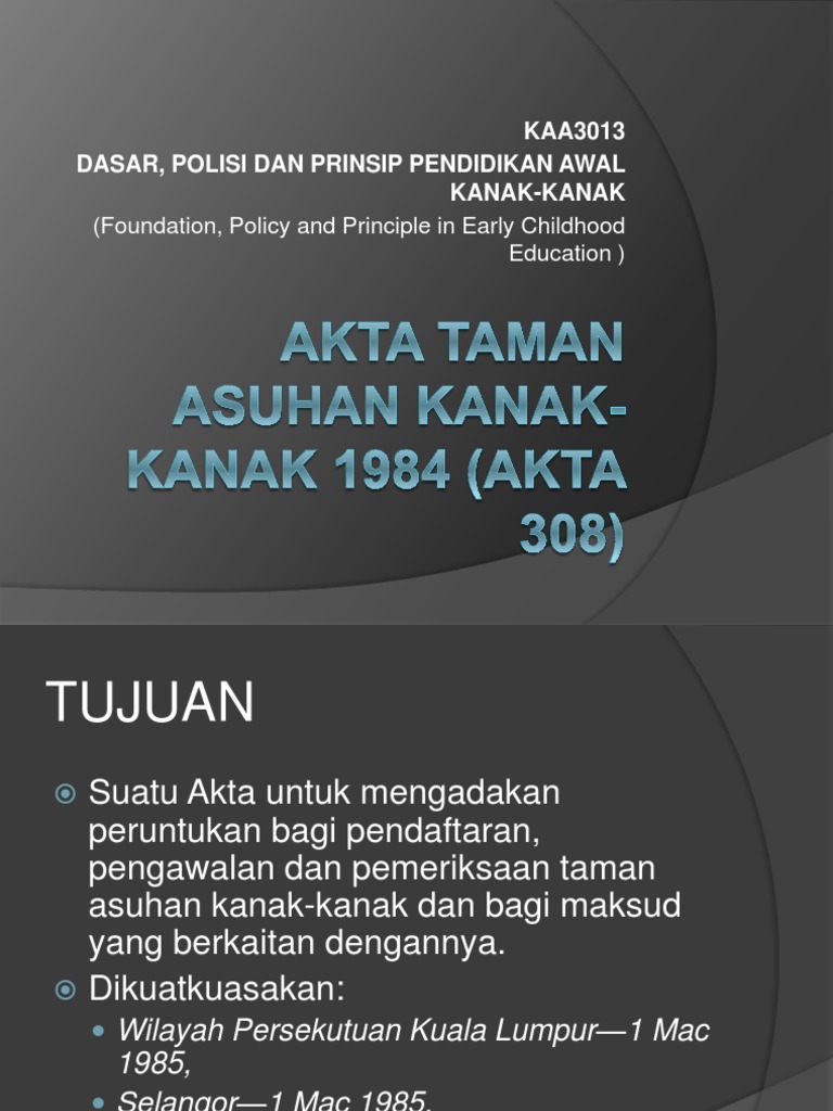 Akta Penjagaan Kanak-Kanak 1961 : Akta pendidikan pendidikan 1996 adalah merupakan lanjutan dan pembaharuan dari akta pelajaran 1961.. Tanggungjawab malaysia sebagai negara pihak konvensyen mengenai. Penjagaan dan pemeliharaan akta penjagaan kanakakta penjagaan kanak kanak 1961 msia barat kanak 1961 msia barat uum 1976uum 1976 akta akta pendidikan 1961 1. Umurnya sudah 21 tahun, tetapi tingkah lakunya masih ~. Mengenakan hukuman denda tidak lebih daripada rm10 000 atau penjara tidak lebih daripada 5 tahun. Hasrat dan tujuan akta pendidikan 1961 •menyatukan kaum yang ada di malaysia.