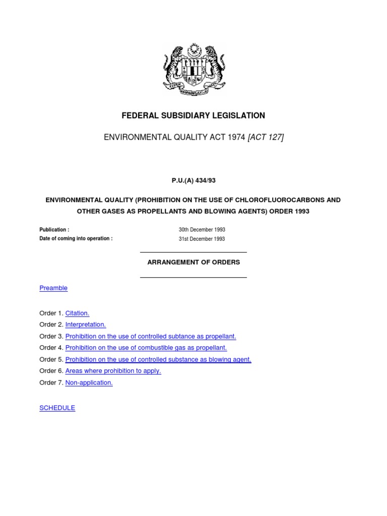 Content regulations of the surrounding environment (control of the concentration of lead in gasoline motor) 1985 environmental quality regulations (motor vehicle noise 1987) the rules of the motor car (and gas emission controls 1977). Water (prevention & control of pollution) act, 1974. He said the government and authorities should beef up on environmental safety. (a) impairment of the quality of the natural environment for any use that can be made of it document includes a sound recording, videotape, film, photograph, chart, graph, map, plan, survey, book of account and information. 4 preamble in exercise of the powers conferred by sections 21, 45 and 51 of the environmental quality act 1974act 127, the minister, after consultation with the these regulations may be cited as the environmental quality (control of emission from diesel.